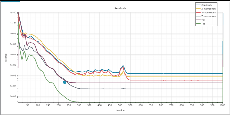 Berikut adalah Grafik Residual vs Iteration yang telah saya Iterasi selama 1000 kali yang dilakukan pada Software Siemens Star CCM+.