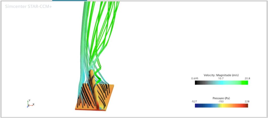 - Konfigurasi Simulasi CFD di STAR-CCM+: Menentukan kondisi batas (inlet, outlet, wall), memilih model turbulensi (misalnya k-epsilon atau SST), dan menjalankan simulasi.