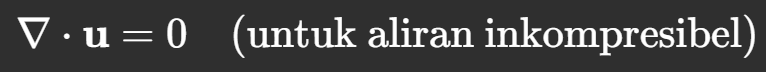 Sementara persamaan kontinuitas menjamin konservasi massa: