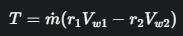 di mana mห adalah laju aliran massa, r adalah radius, dan Vwโ adalah komponen tangensial dari kecepatan absolut (disebut velocity of whirl).