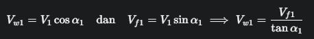 - Implikasi Desain: Jika Vw2โ=0, kecepatan absolut di sisi keluar (V2โ) menjadi murni radial (V2โ=Vf2โ), dan segitiga kecepatan keluar menjadi segitiga siku-siku.