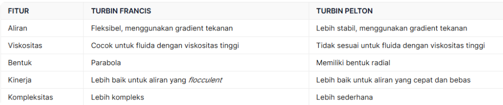 Perbedaan Utama Francis Turbine vs Pelton Turbine: