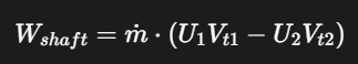 - Persamaan Euler untuk turbin (W_shaft = m⋅(U_1 ⋅ V_(t1) − U_2 ⋅ V_(t2))) dan bagaimana persamaan ini menunjukkan transfer energi ke poros.