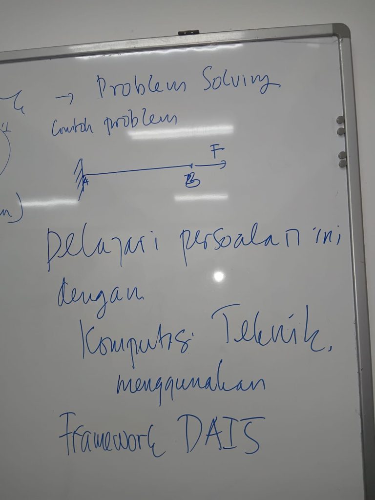 - Intention (Niat / Tujuan Menentukan apa yang ingin dicapai : a. Menyelesaikan persoalan teknik ini dengan pendekatan komputasi teknik Dalam konteks ini, mungkin kita ingin: A1. Menentukan besar regangan (strain), A2. Menentukan tegangan (stress) A3. Menghitung deformasi (perubahan panjang) dari batang akibat gaya tarik.