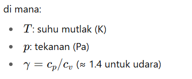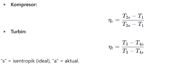 - Kompressi adiabatik (isentropic ideal) di kompresor โ tekanan & temperatur naik.