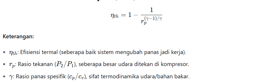 Intinya: Makin tinggi rasio tekanan rp, makin tinggi efisiensinya. Hanya berlaku untuk siklus ideal (tanpa gesekan, dll).