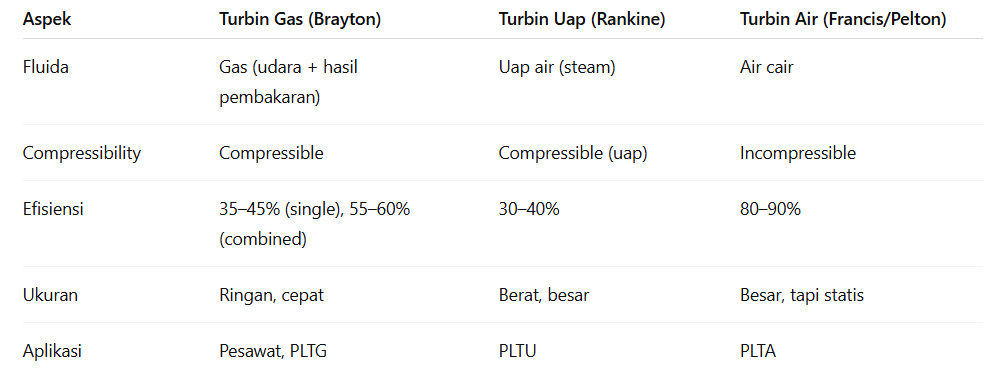 Berikut perbandingan Turbin Gas dengan Turbin Jenis Lain :
