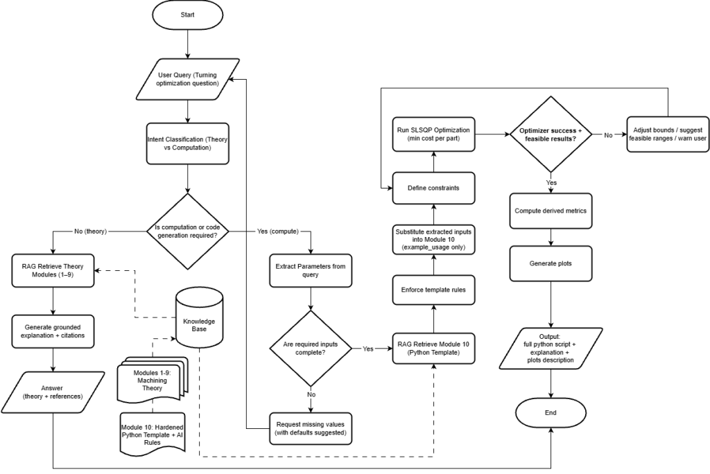 Machining theory documents were curated and converted into structured text modules for RAG retrieval.