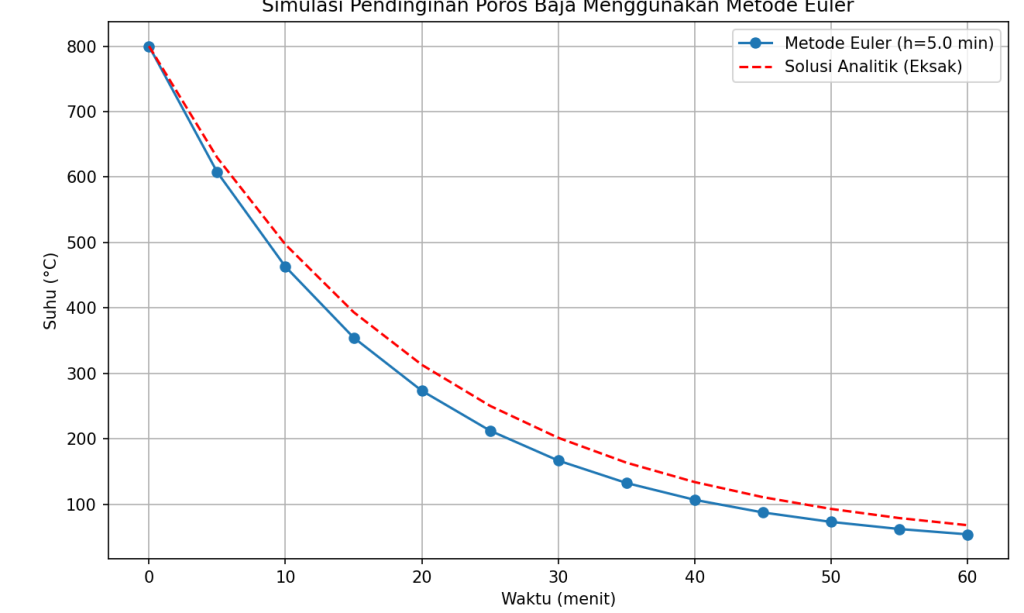 plt.title(‘Simulasi Pendinginan Poros Baja Menggunakan Metode Euler’)