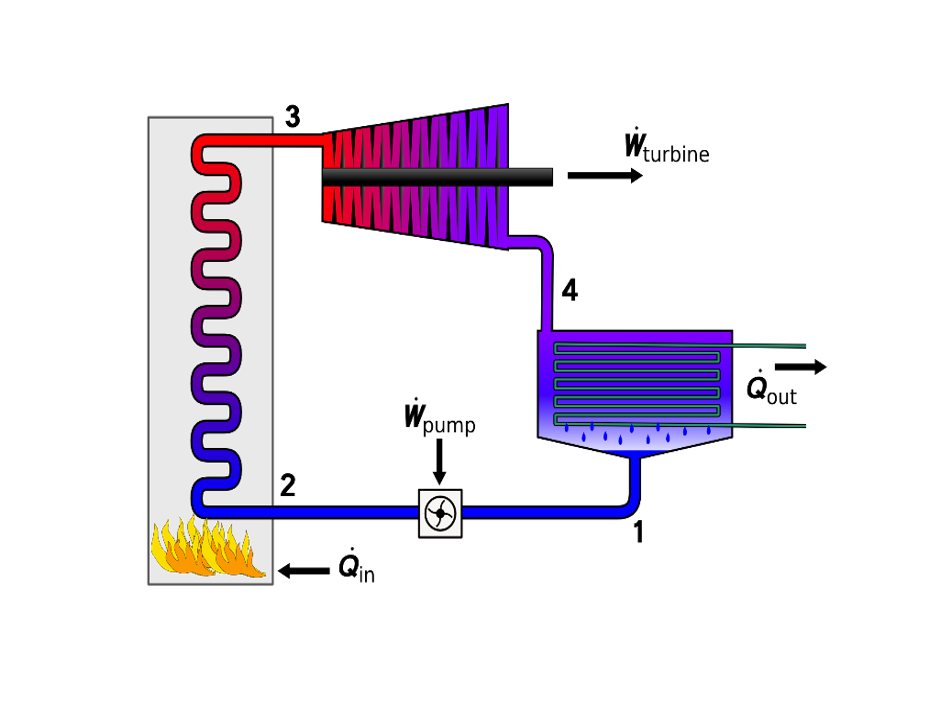 - Terdapat 4 proses utama pada rankine cycle yaitu kompresi, heating/evaporasi, ekspansi, dan cooling/kondensasi