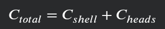 – Biaya Shell (Cshell): Berbanding lurus dengan volume material dinding silinder. Semakin besar radius (R) dan panjang (L), maka luas permukaan akan meningkat.