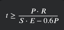 Ketebalan minimum dinding (t) sangat bergantung pada tekanan kerja (P) dan radius (R), sesuai dengan rumus berdasarkan kode Pressure Vessel ASME: